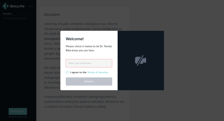 - Így bekerül virtuális rendelőm virtuális várótermébe. Kérem itt várakozzon, amíg megérkezem, vagy ellátom az Ön előtt lévő pácienst.